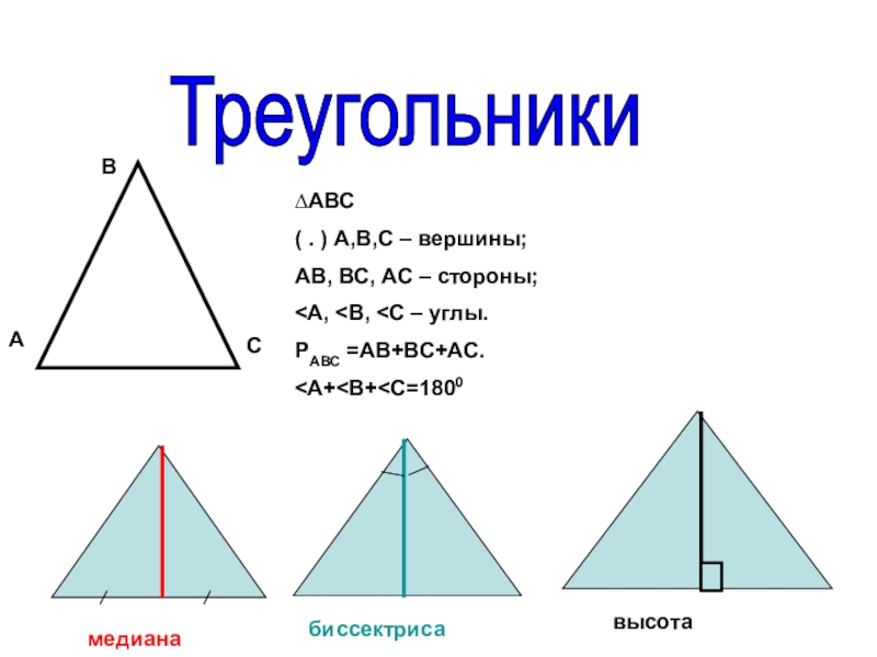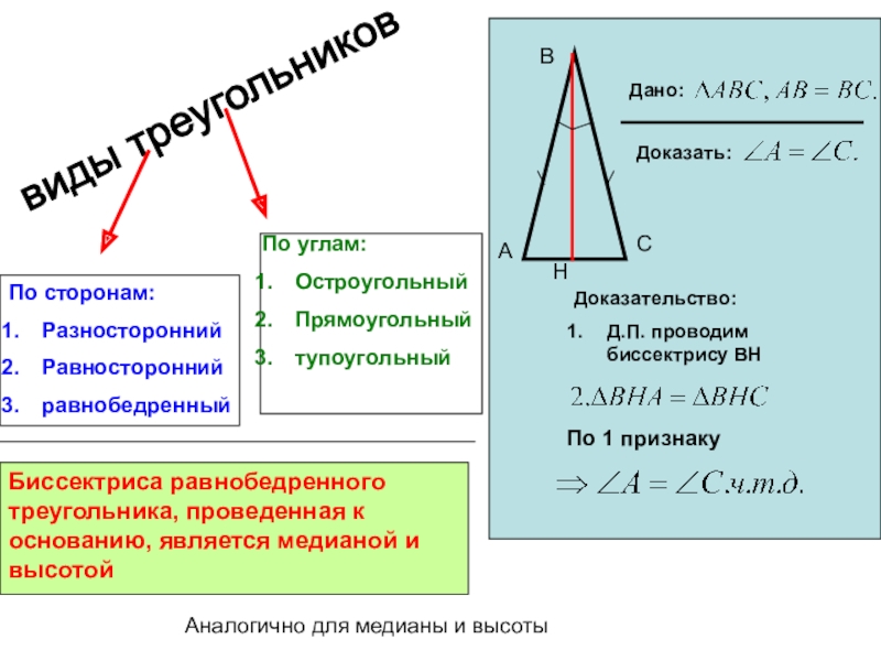 Аналогично для медианы и высоты