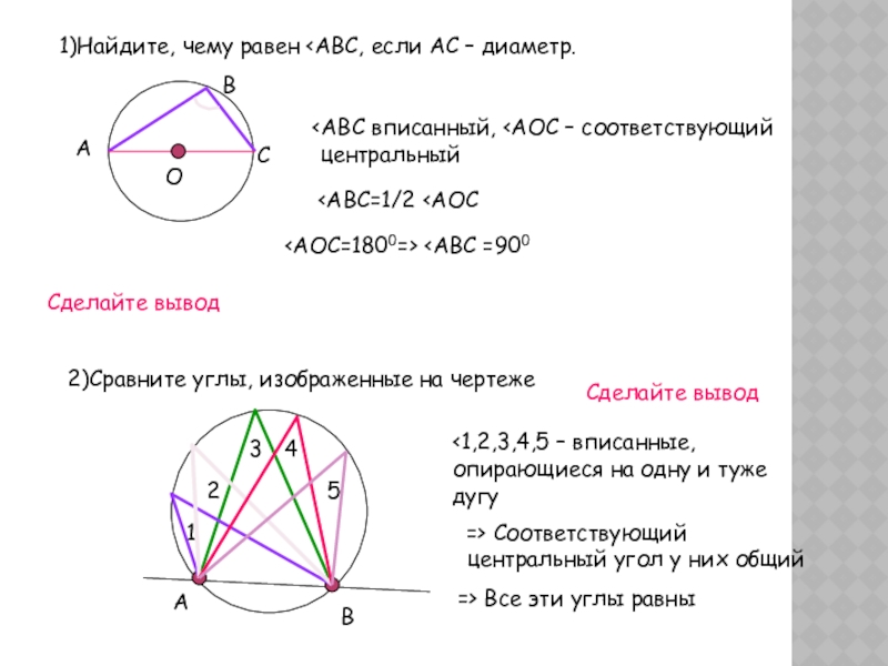 <1,2,3,4,5 – вписанные, опирающиеся на одну и туже дугу