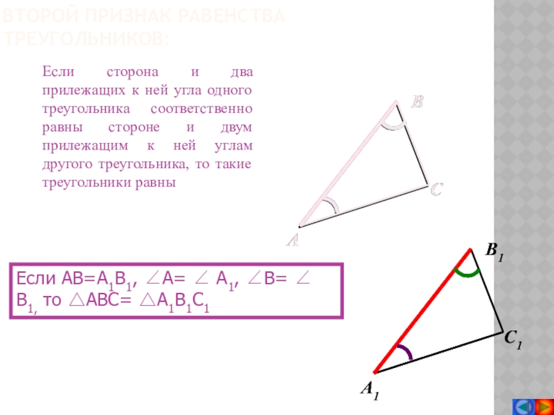 Если AB=A1B1, ∠A= ∠ A1, ∠B= ∠ B1, то △ABC= △A1B1C1