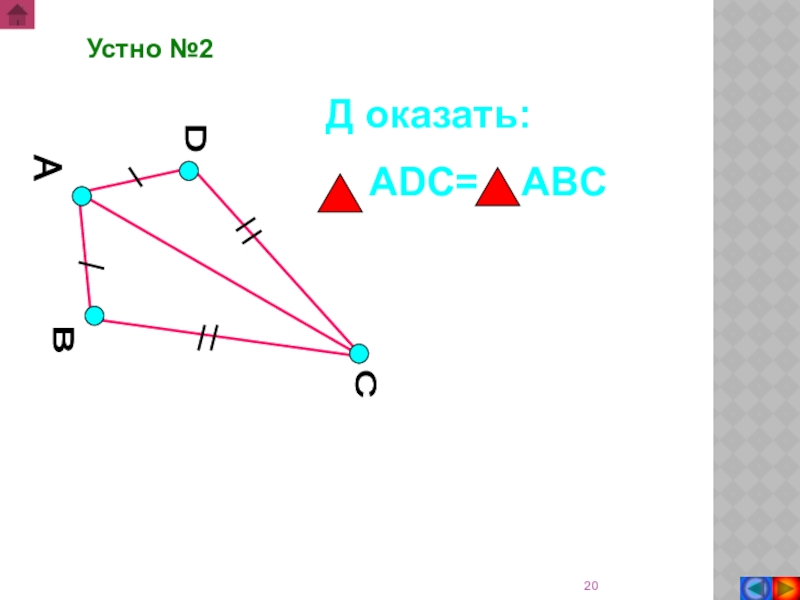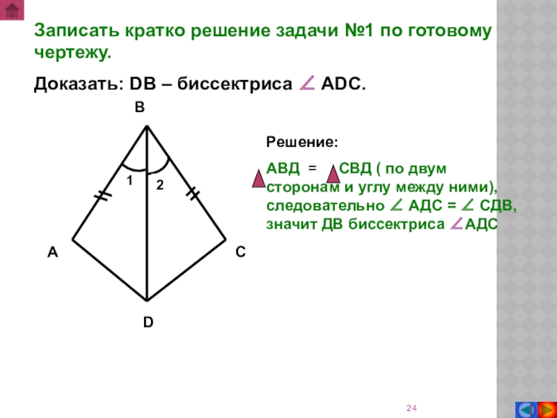 АВД = СВД ( по двум сторонам и углу между ними), следовательно ∠ АДС = ∠ СДВ, значит ДВ биссектриса ∠АДС