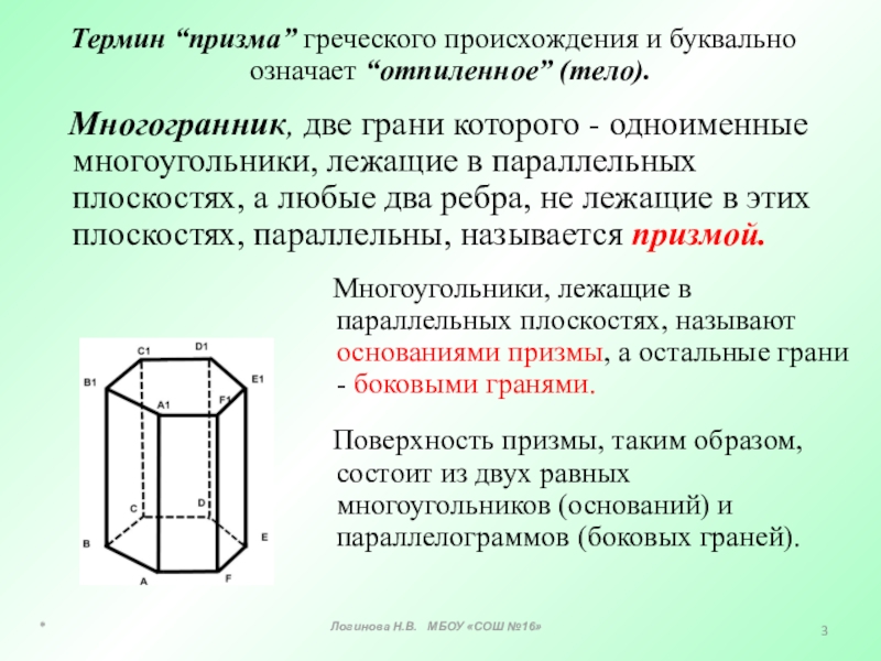 Термин “призма” греческого происхождения и буквально означает “отпиленное” (тело).