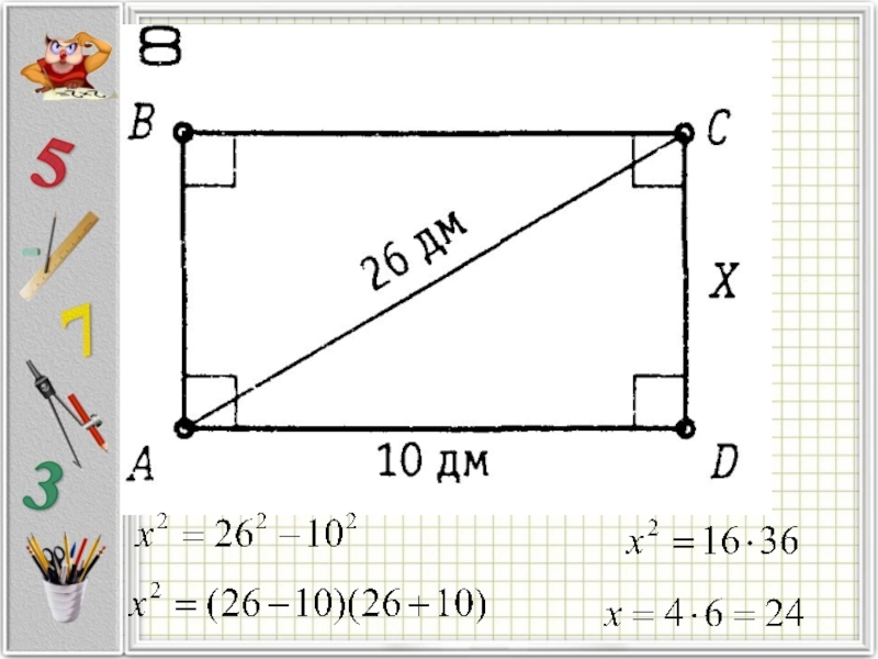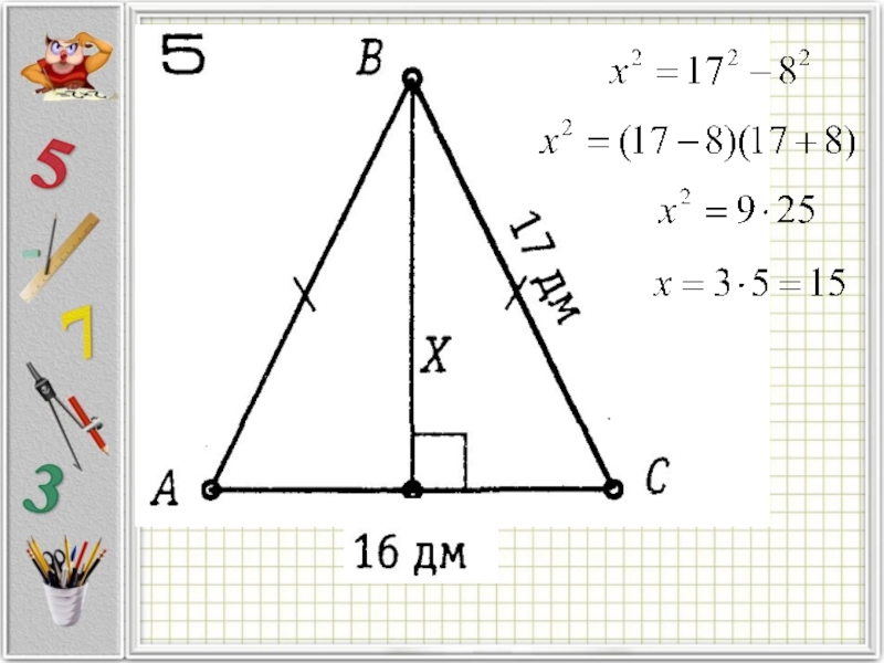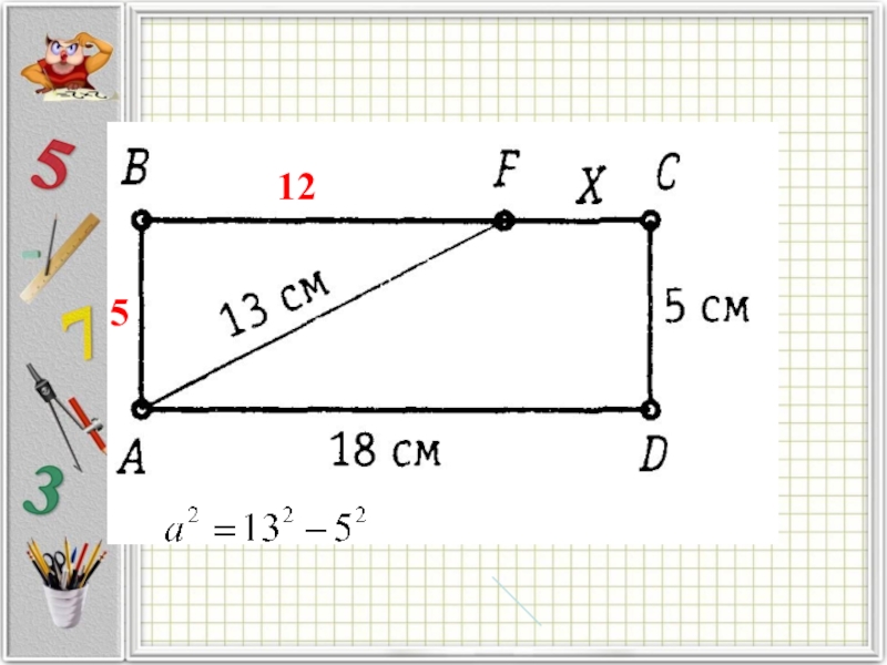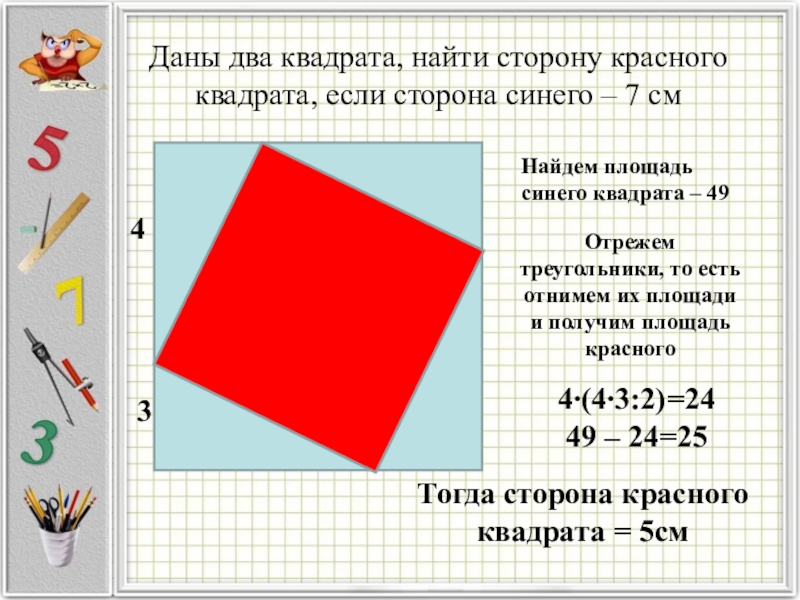 Тогда сторона красного квадрата = 5см