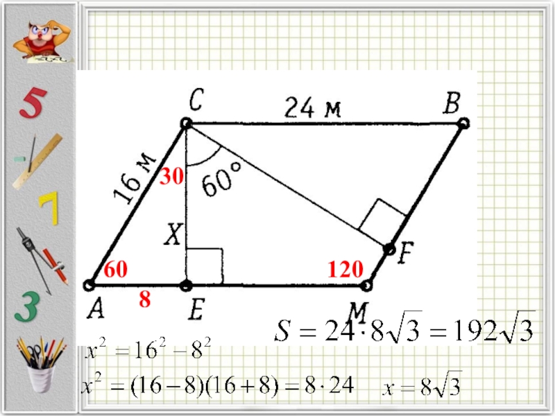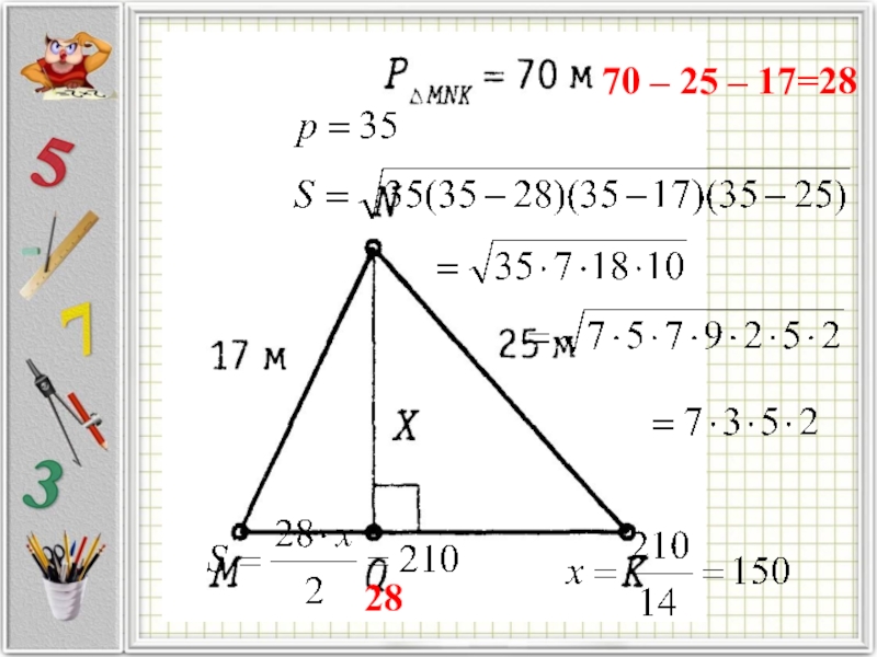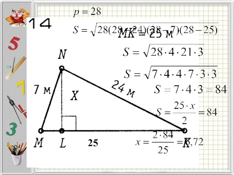 Найдем площадь треугольников –