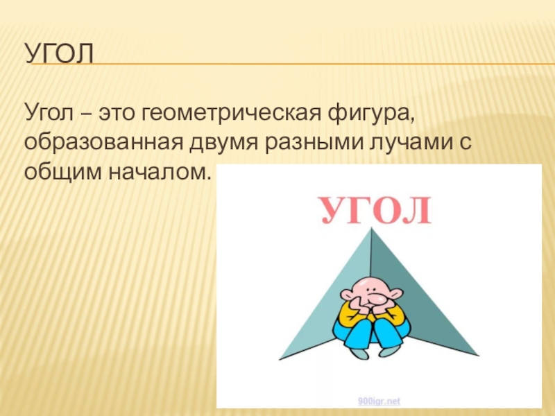 Угол – это геометрическая фигура, образованная двумя разными лучами с общим