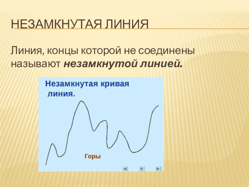 Незамкнутая линияЛиния, концы которой не соединены называют незамкнутой линией.