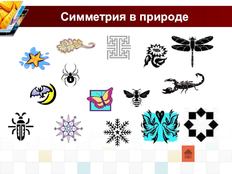 Уметь строить симметричные фигуры, видеть симметрию природных объектов