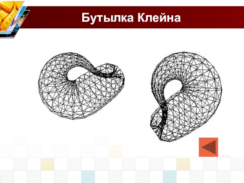 Иметь понятие об односторонней и двусторонней поверхностях, уметь выполнять и объяснять опыты с листом Мебиуса, иметь представление о «бутылке Клейна.