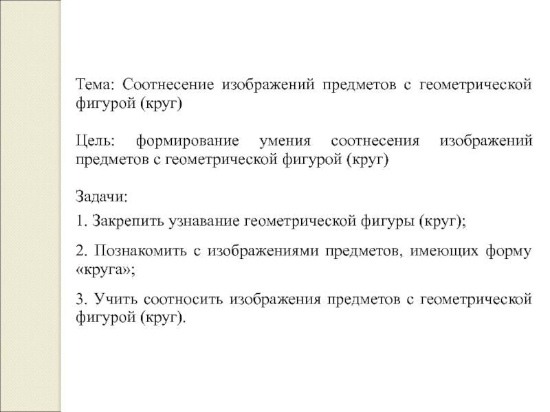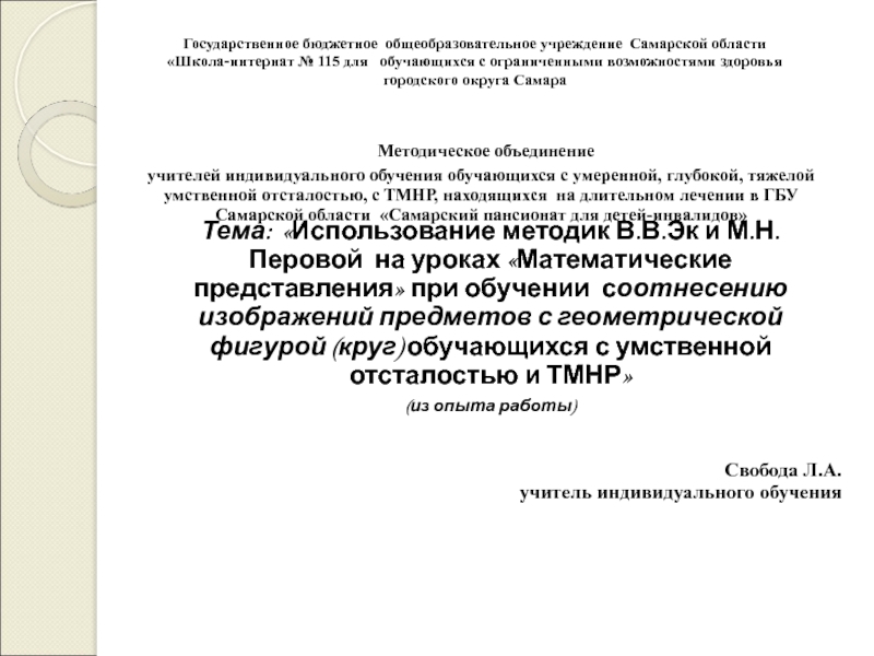 Тема: «Использование методик В.В.Эк и М.Н.Перовой на уроках «Математические представления» при обучении соотнесению изображений предметов с геометрической фигурой (круг) обучающихся с умственной отсталостью и ТМНР»