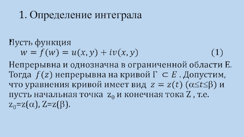 Слайд 1Интеграл от функции комплексного переменного