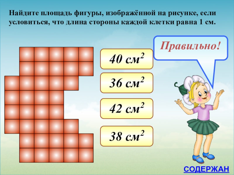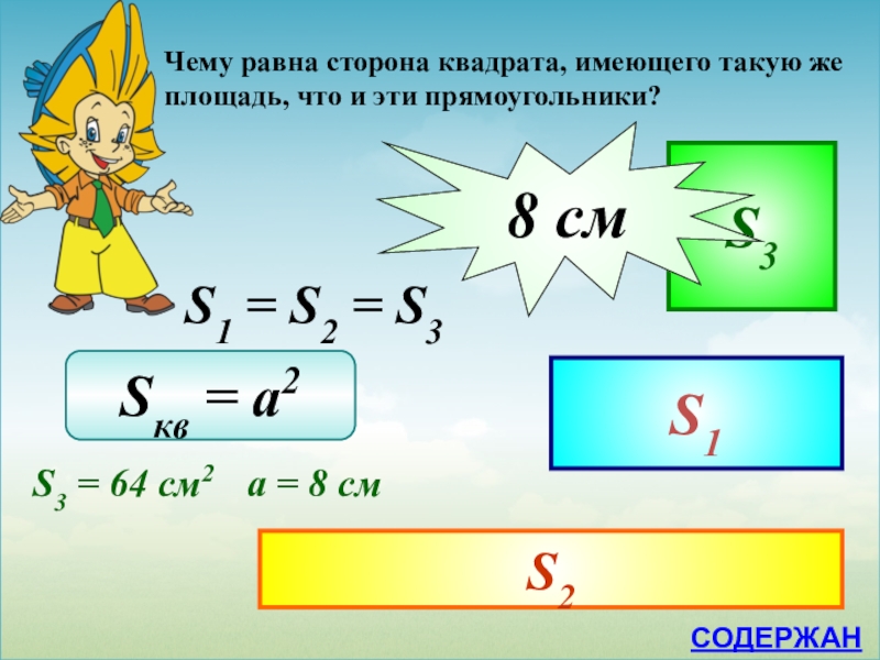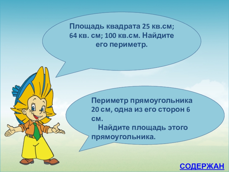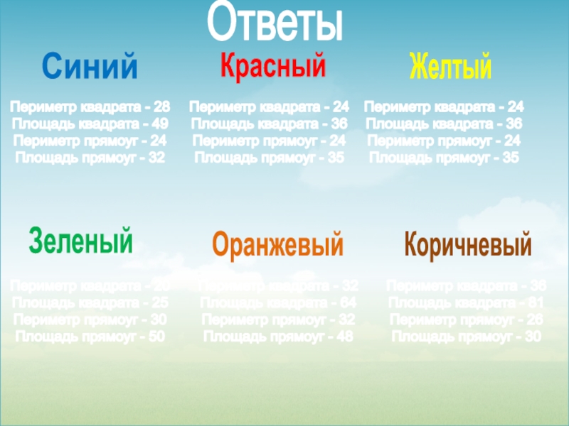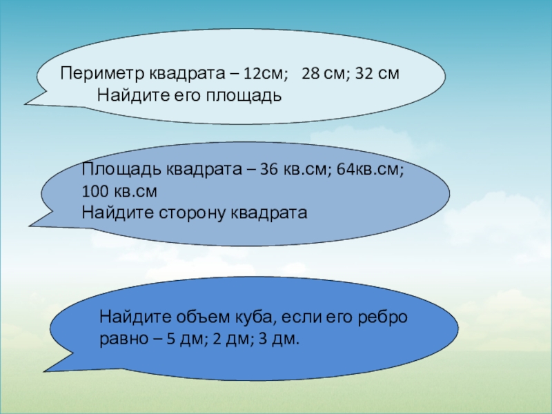Площадь квадрата – 36 кв.см; 64кв.см;