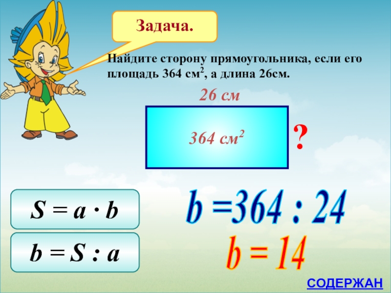 Одна сторона прямоугольника 9 м, а другая в 3 раза меньше. Найдите площадь этого прямоугольника.