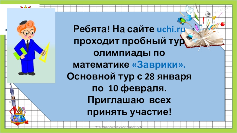 Это сайт презентаций, где можно хранить и обмениваться своими презентациями, докладами, проектами, шаблонами в формате PowerPoint с другими пользователями. Мы помогаем школьникам, студентам, учителям, преподавателям хранить и обмениваться учебными материалами.