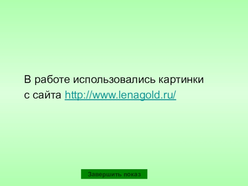 В работе использовались картинки  с сайта http://www.lenagold.ru/ Завершить показ