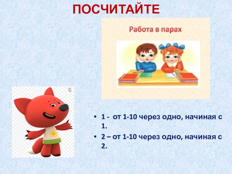 ПОСЧИТАЙТЕ1 - от 1-10 через одно, начиная с 1.2 – от 1-10 через одно, начиная с 2.