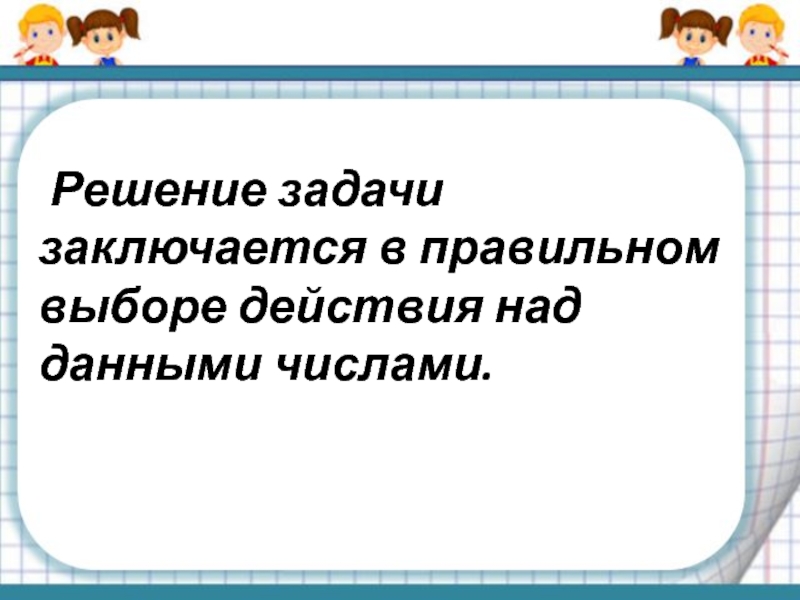 Слайд 3 Решение задачи заключается в правильном выборе действия над