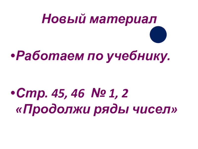Новый материалРаботаем по учебнику.Стр. 45, 46 № 1, 2 «Продолжи ряды чисел»