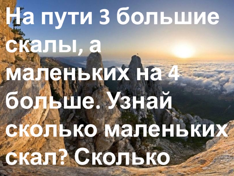 Слайд 25На пути 3 большие скалы, а маленьких на 4 больше. Узнай