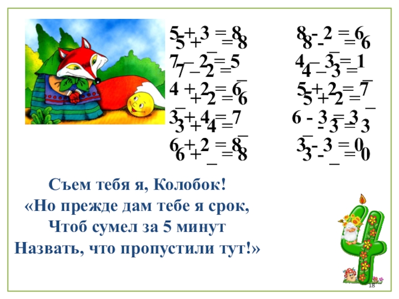 5 + _ = 8 8 - _ = 6