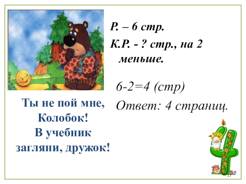 7 – 2 = _ 4 – 3 = _