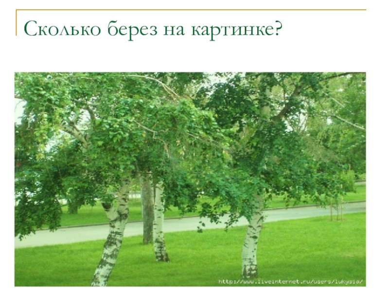 Слайд 7Сколько берез на картинке?