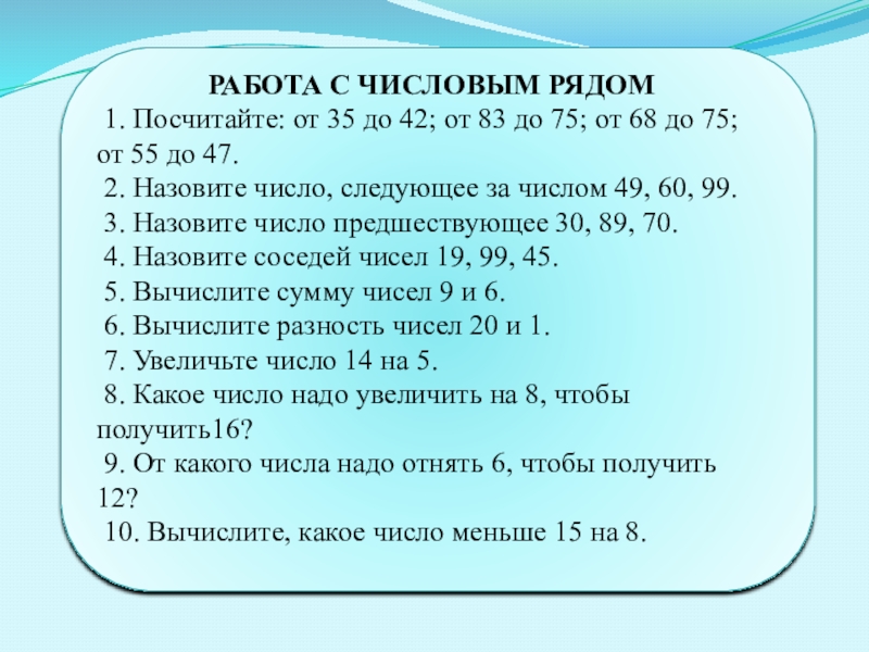 Слайд 4РАБОТА С ЧИСЛОВЫМ РЯДОМ