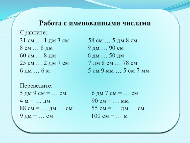 6 дм … 6 м 5 см 9 мм … 5 см 7 мм
