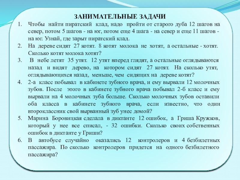 Слайд 9ЗАНИМАТЕЛЬНЫЕ ЗАДАЧИ