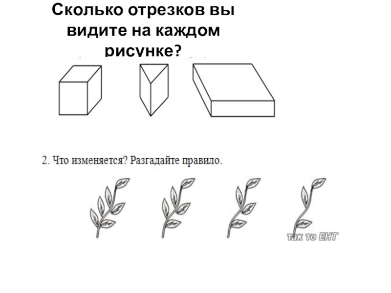 Слайд 1Сколько отрезков вы видите на каждом рисунке?