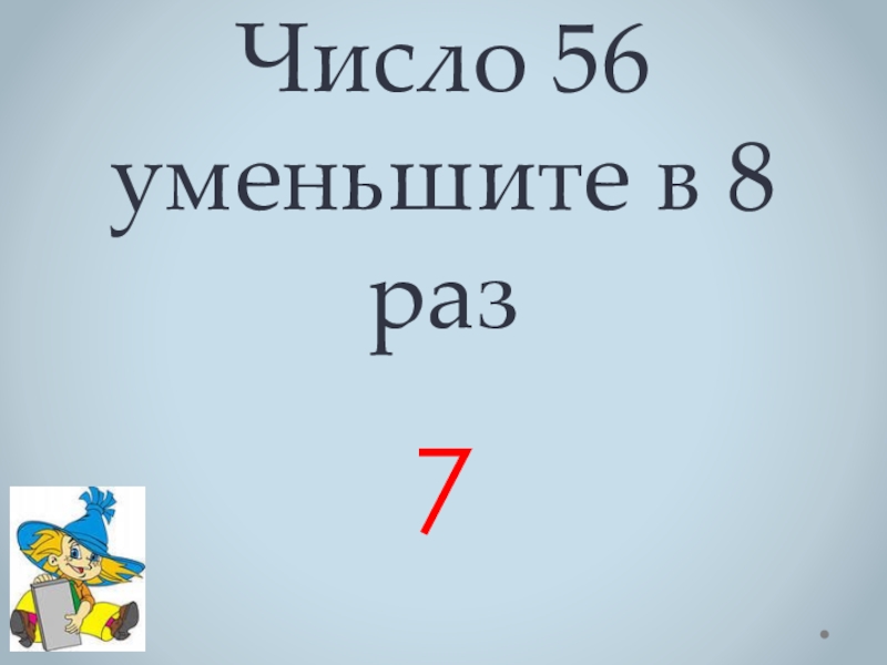 Слайд 4 Число 56 уменьшите в 8 раз