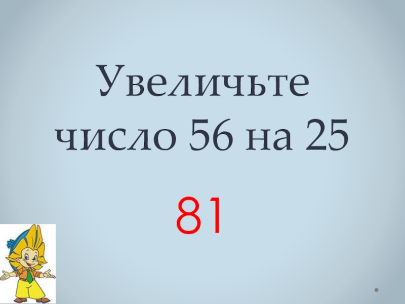 Слайд 7Увеличьте число 56 на 25