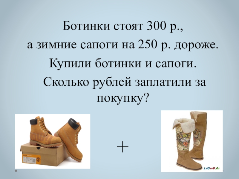 Слайд 15Ботинки стоят 300 р.,
