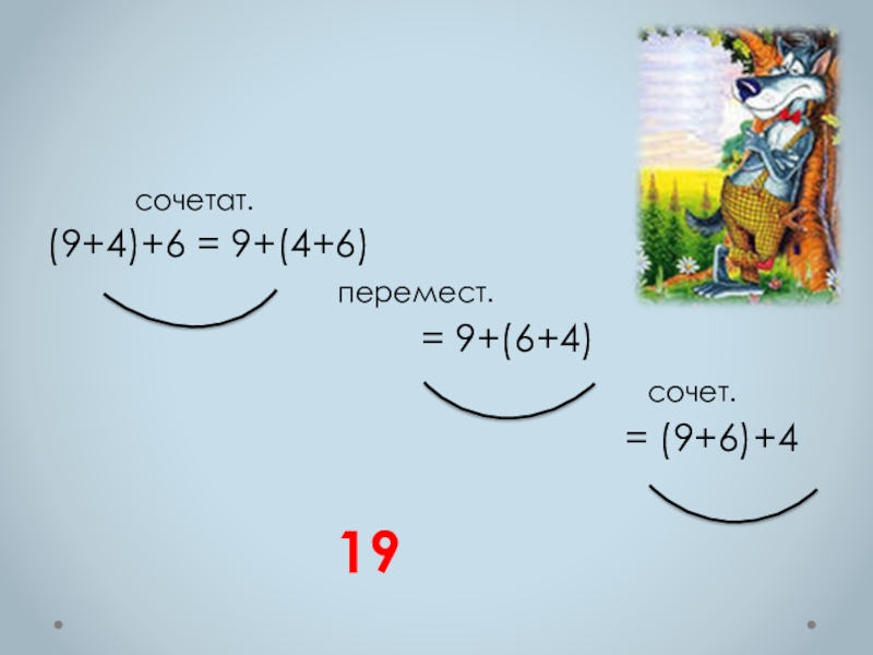 сочетат.(9+4)+6 = 9+(4+6)