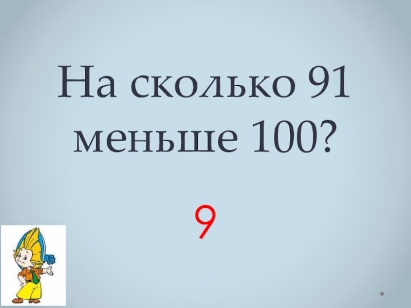 На сколько 91 меньше 100? 9