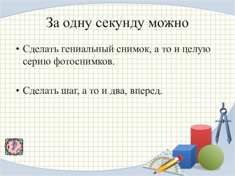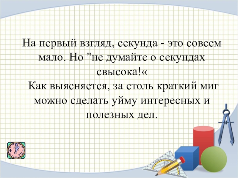 Слайд 7На первый взгляд, секунда - это совсем мало. Но "не думайте