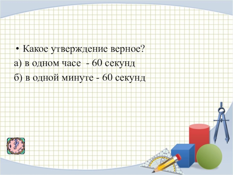 Какое утверждение верное?а) в одном часе  - 60 секундб) в одной минуте - 60 секунд