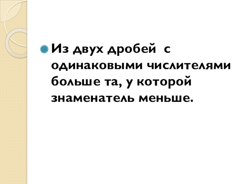 Слайд 19Из двух дробей с одинаковыми числителями больше та, у которой знаменатель