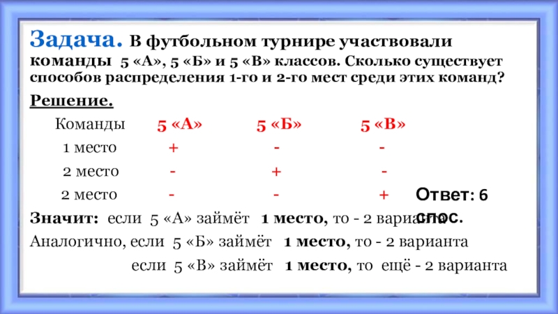 Значит: если 5 «А» займёт 1 место, то - 2 варианта