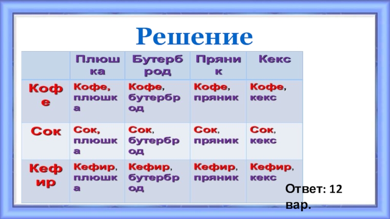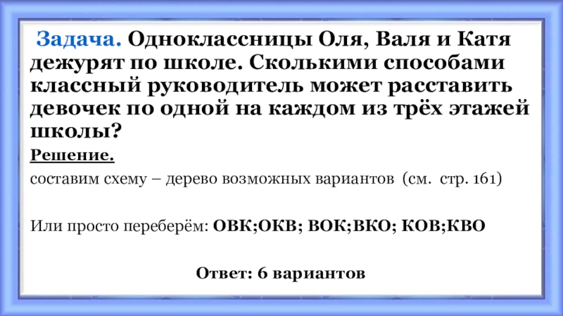 составим схему – дерево возможных вариантов (см. стр. 161)