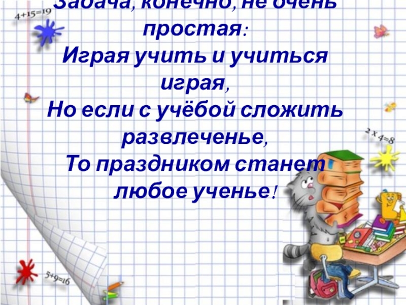 Слайд 1Задача, конечно, не очень простая: Играя учить и учиться играя, Но если с