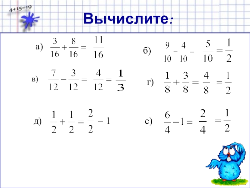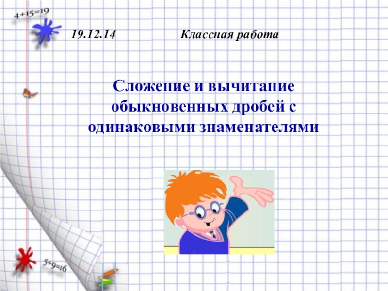 Сложение и вычитание обыкновенных дробей с одинаковыми знаменателями19.12.14
