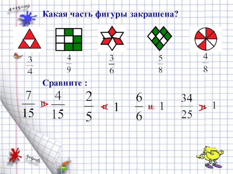 Сравните :Какая часть фигуры закрашена?и111иии>