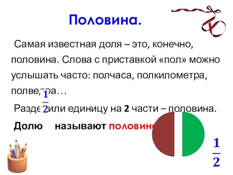 Самая известная доля – это, конечно, половина. Слова с