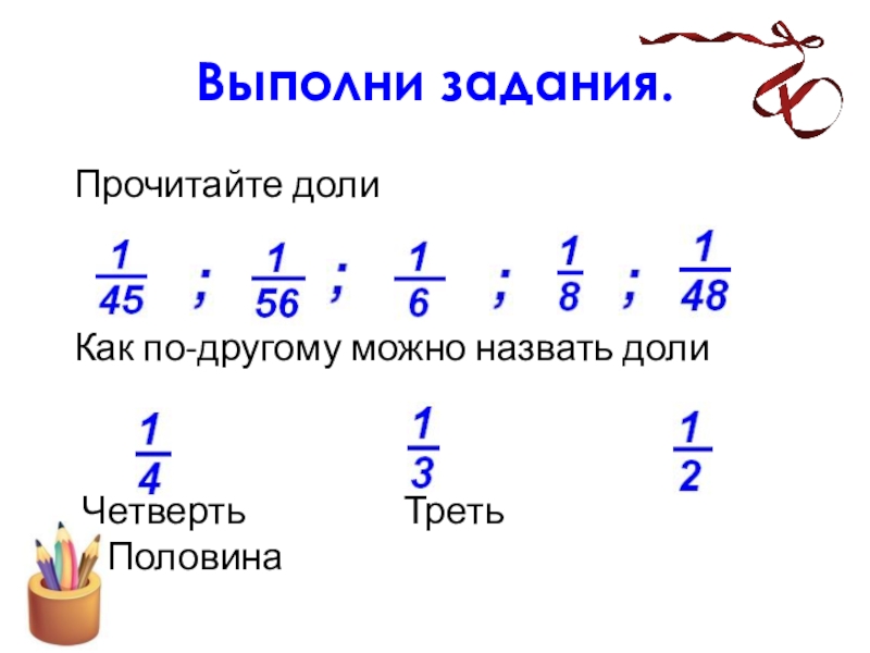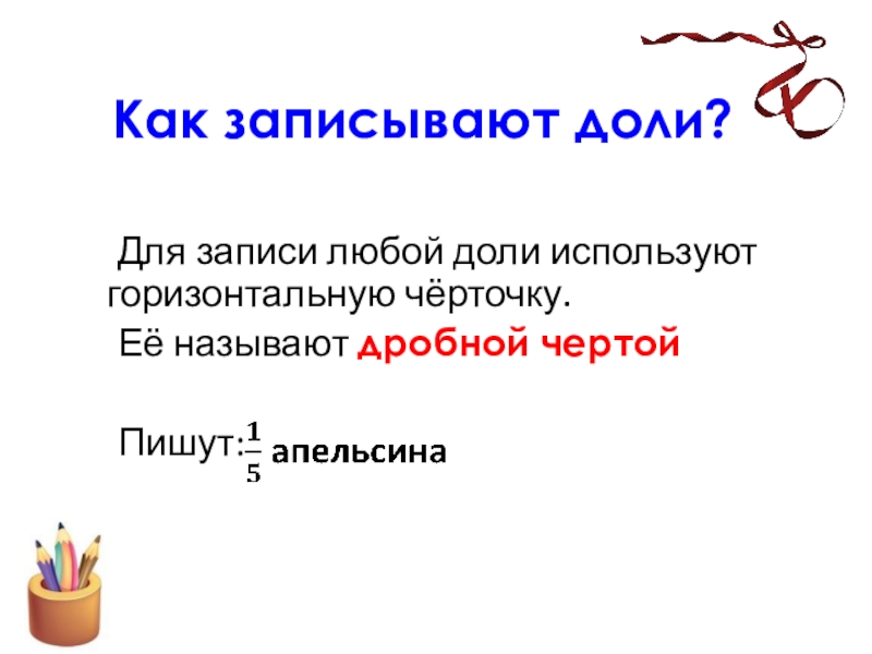 Слайд 12Как записывают доли?