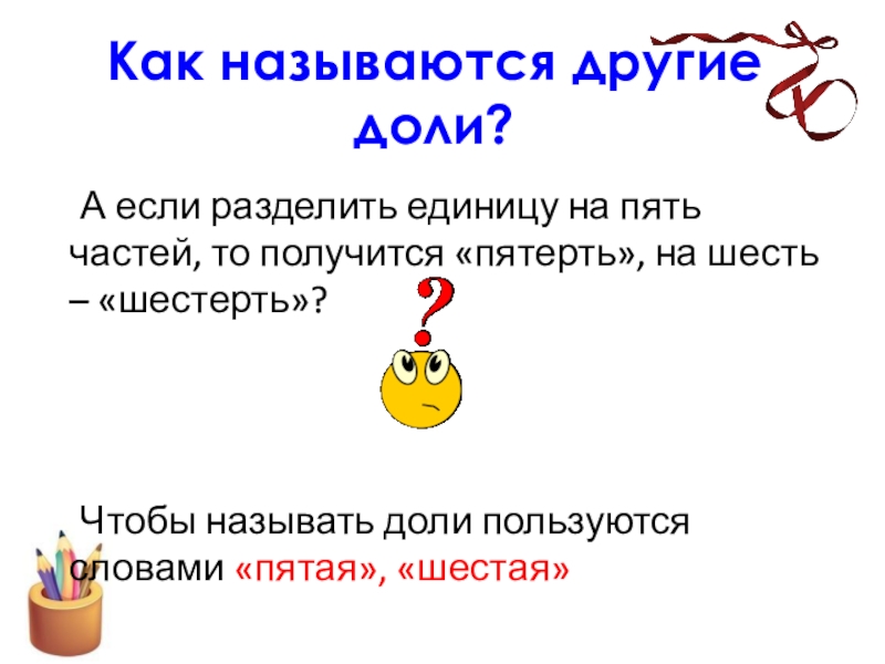 Чтобы называть доли пользуются словами «пятая», «шестая»