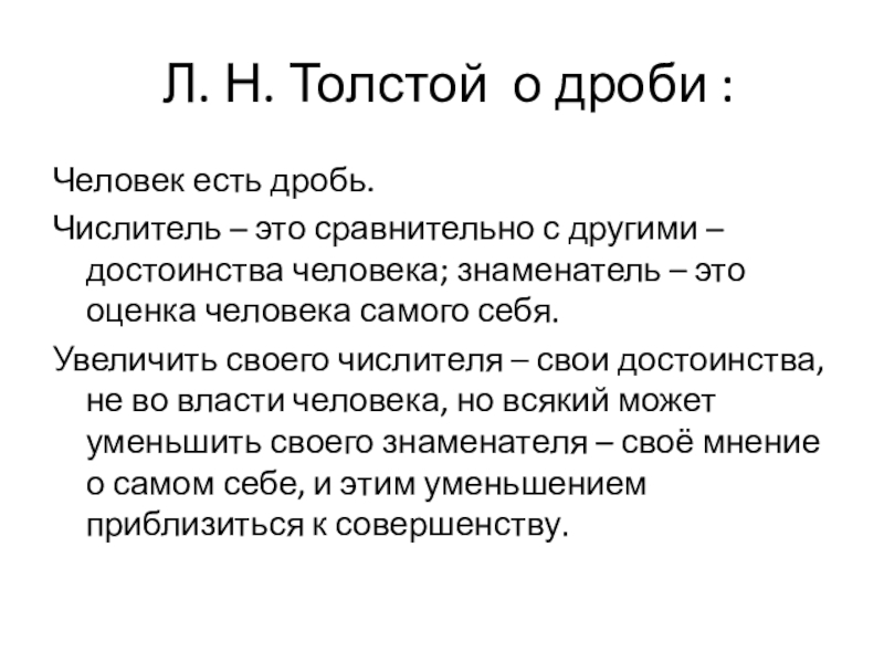 Слайд 4 Л. Н. Толстой о дроби :