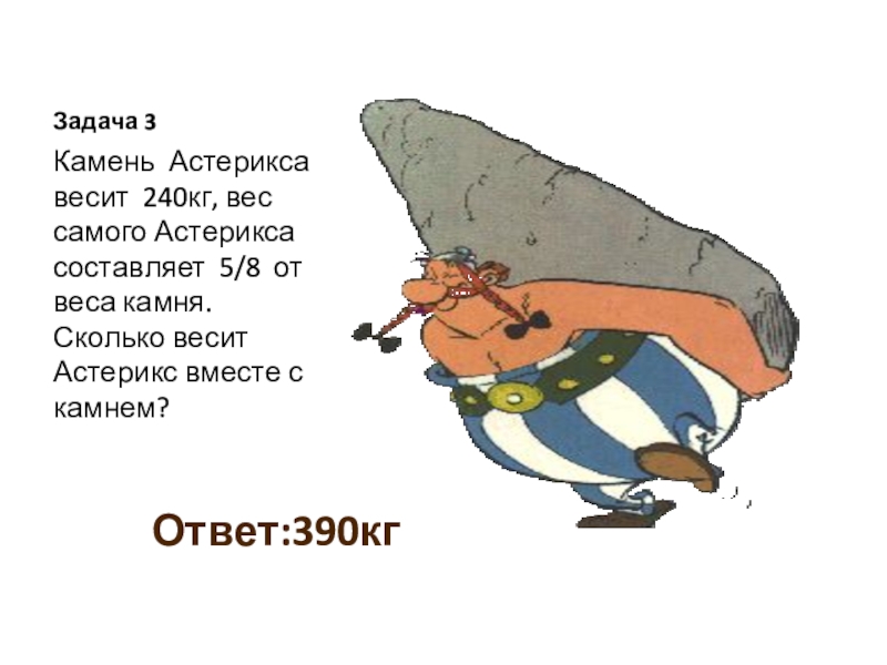 Камень Астерикса весит 240кг, вес самого Астерикса составляет 5/8 от