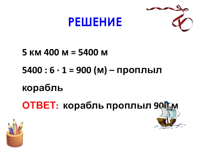 1 = 900 (м) – проплыл корабль