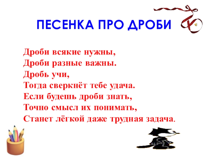 Слайд 46ПЕСЕНКА ПРО ДРОБИ
