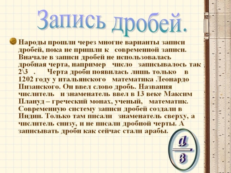 Слайд 5История дробей.