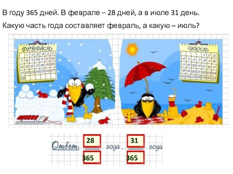 Какую часть года составляет февраль, а какую – июль?